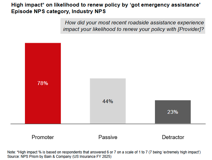 A strong emergency assistance experience creates brand promoters, driving customer renewals as a result